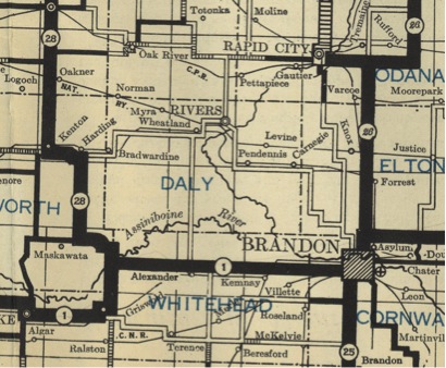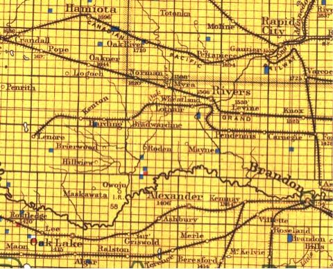 Note the communities of Lothair, Pendennis and Roden, surrounding the region where Rivers was yet to be.