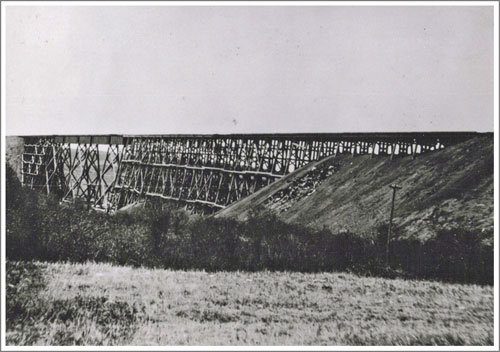 The Rivers Trestle Bridge, first used in 1908, shown here about 1910.