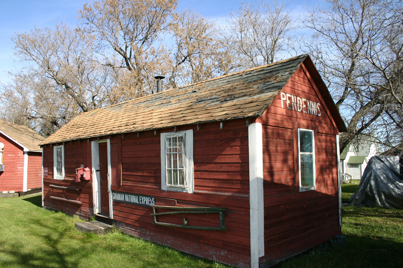 At the beginning it wasn’t a dream, or even a thought to own our own Museum or anything of that nature. It was just a desire to acquire a set of crockery jugs from the small pint to a large five-gallon. This started after we purchased the old General Store at Carnegie. While dismantling it, we discovered a huge five-gallon jug in one of the corners. It found a place in our kitchen and in no time was the center of a set of other sizes and trade names. Then along came Canada’s 100th Birthday – 1967 – with the desire to set up a small display as our way of celebrating the Centennial. Well! We had an empty “Bunk House” which had been built during the 1940’s to accommodate extra harvesters needed to help with our farming operations. This seemed like the ideal spot to put the jugs, churns, and a few other articles acquired during 30 years of wedded bliss. From there it was off and running! We were bitten by the “Bug”. We came to know the fun and rivalry of Auction Sales. We found ourselves the recipients of gifts from folk who didn’t want to throw old, unused articles away, but who wished them to be kept undercover. Soon our “Bunk House” was bulging at the seams. Luckily, some years prior to 1967, we had purchased the Pendennis Railway Station which we intended to use for grain storage. It was moved to a new location and soon became part, and full, of our collection. The “Complex” as we now call if as it seems to be “the word” nowadays, is made up of Robinville School, a Jug House, a General Store, a Library, andSmoke Shop combined, as well as the two above-mentioned buildings. Oh yes, the “Bunk House” has been renamed-the “Glass-House”. Much more sophisticated.