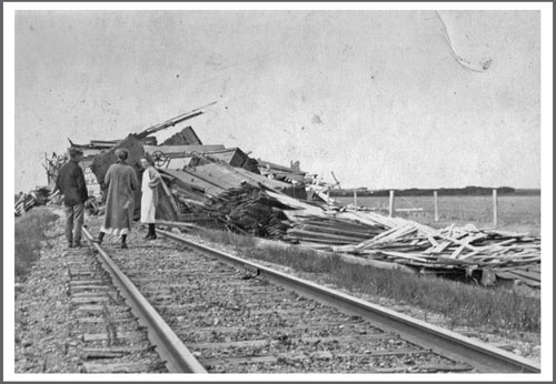 The most serious accident in the Rivers area happened in September of 1915 when a tornado took out a portion of the 115 foot high Minnewaska bridge near Uno and W. Files the engineer died when his freight train ran into a gap. For a time GTP trains had to be routed over CPR lines via Minnedosa. (Minnedosa Tribune Sept. 9.)